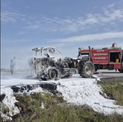 Edinilen bilgilere göre, hareket halindeki iş makinesi henüz belirlenemeyen bir sebeple yanmaya başladı. Kısa sürede büyüyen alevler makineyi sararken, durumun …