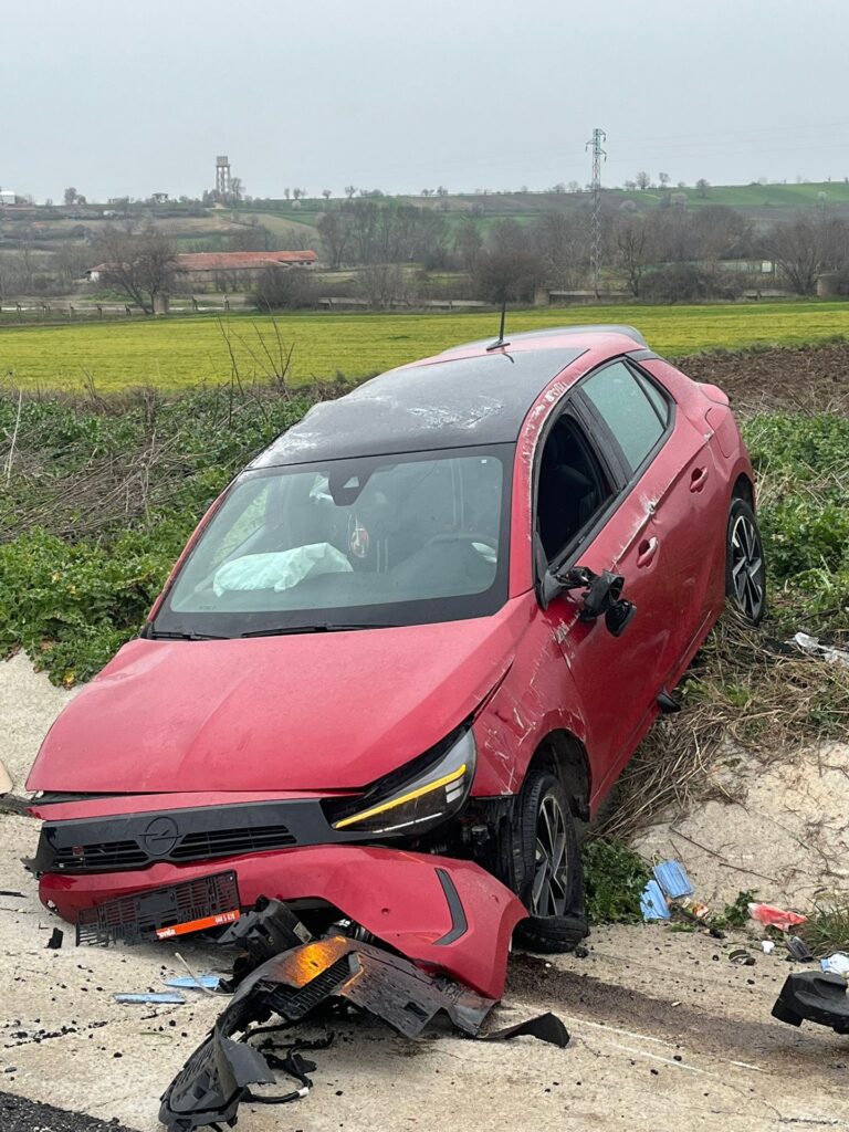 Kırklareli–Edirne kara yolu üzerinde, Ürünlü Kavşağı yakınlarında meydana gelen trafik kazasında bir otomobil kontrolden çıkarak şarampole savruldu.