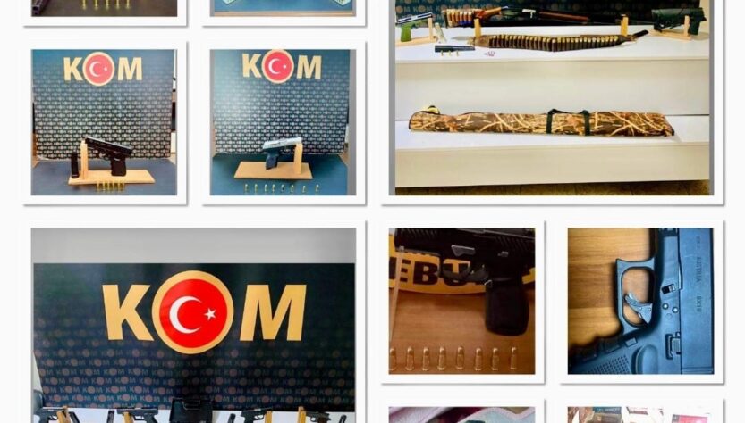 Şüphelilerin ev ve iş yerlerinde yapılan aramalarda 9 ruhsatsız tabanca, 11 şarjör, 174 tabanca fişeği, 2 av tüfeği , 340 Adet Av Tüfeği Fişeği ve uzun namlulu bir tabanca dipçiği ele geçirildi.