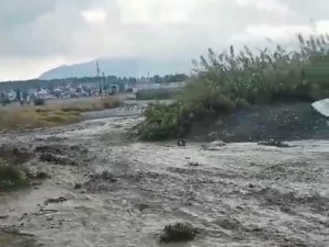Sağanak yağışın etkisiyle dere yatağındaki su seviyesi kısa sürede yükselerek yol kenarına ve çalışma alanına taştı. O sırada bölgede bulunan iki araç su baskınından etkilenirken, olayda herhangi bir yaralanma yaşanmadığı öğrenildi.