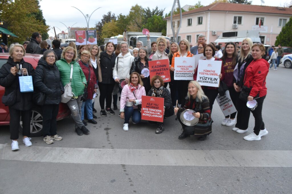 CHP Kırklareli İl Başkanlığı öncülüğünde gerçekleştirilen yürüyüşte, kadınlar ellerindeki boş tencerelere vurarak geçim sıkıntısını protesto etti. Yürüyüş boyunca “Boş tencere kaynamaz” ve “Emeğimizle geçinemiyoruz” sloganları atıldı.